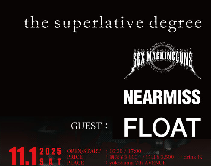日程:11/1(土) 会場:yokohama 7th AVENUE 出演:the superlative degree、SEX MACHINEGUNS、NEARMISS、FLOAT (GUEST) 開場: 16:30 / […]