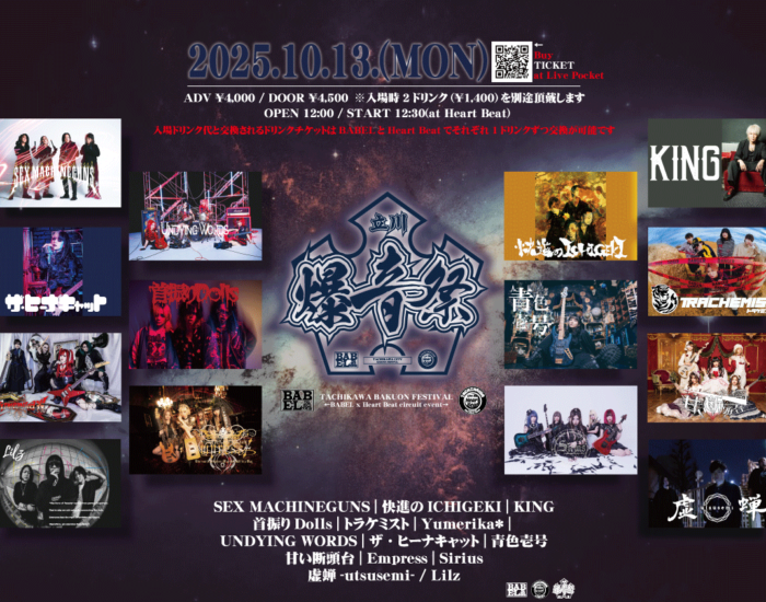 日程:2026/3/15(日) 会場:大阪BIG CAT 時間:開場 13:45. 開演14:30 出演:●THE LOCUS -当日限定バンド-B.KISAKI、Vo.苑(摩天楼オペラ)、G.HIZAKI(Versai […]